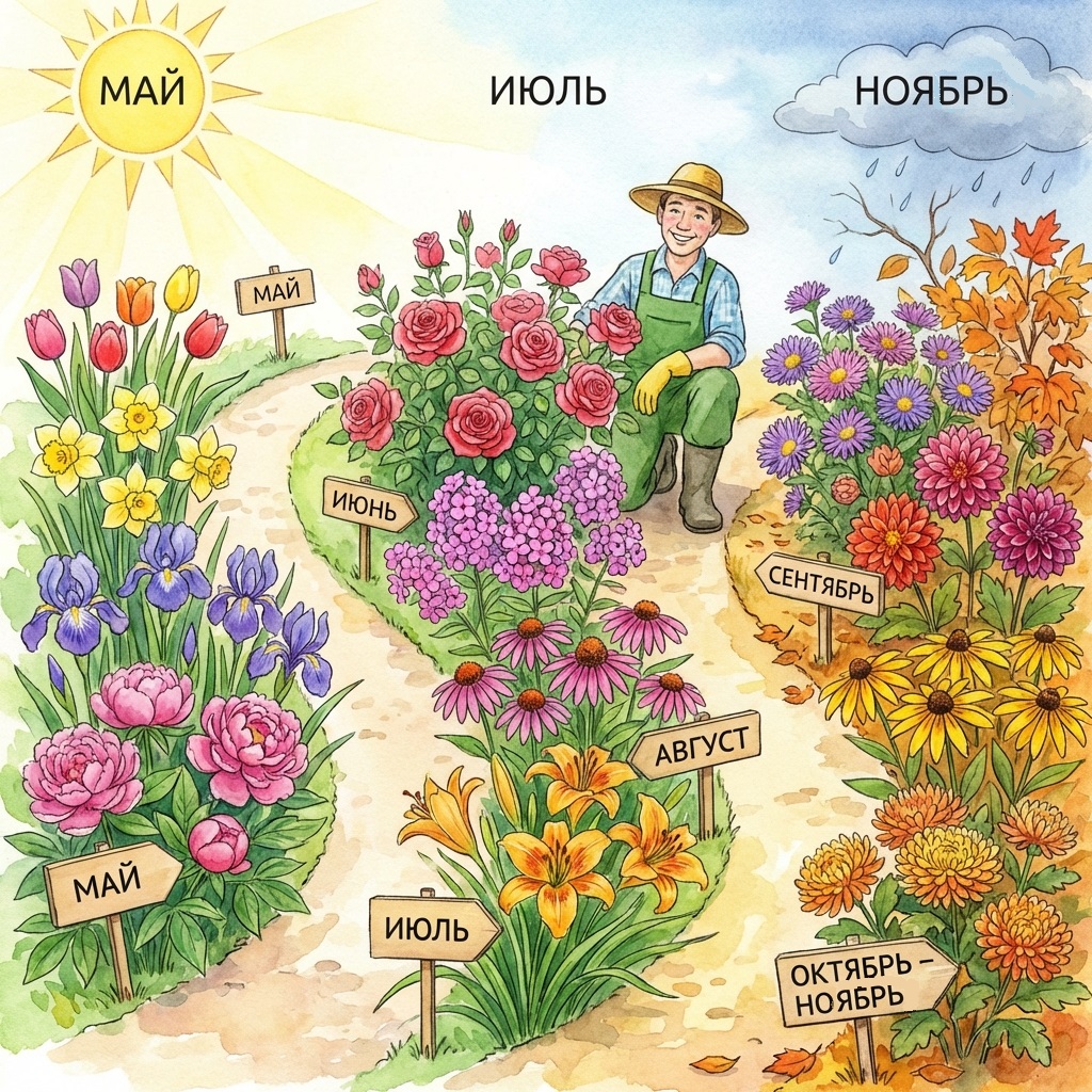 Это амбициозная и благодарная задача. Сад непрерывного цветения — это не просто набор красивых растений, а тщательно продуманная композиция, где одни культуры уступают эстафету другим.